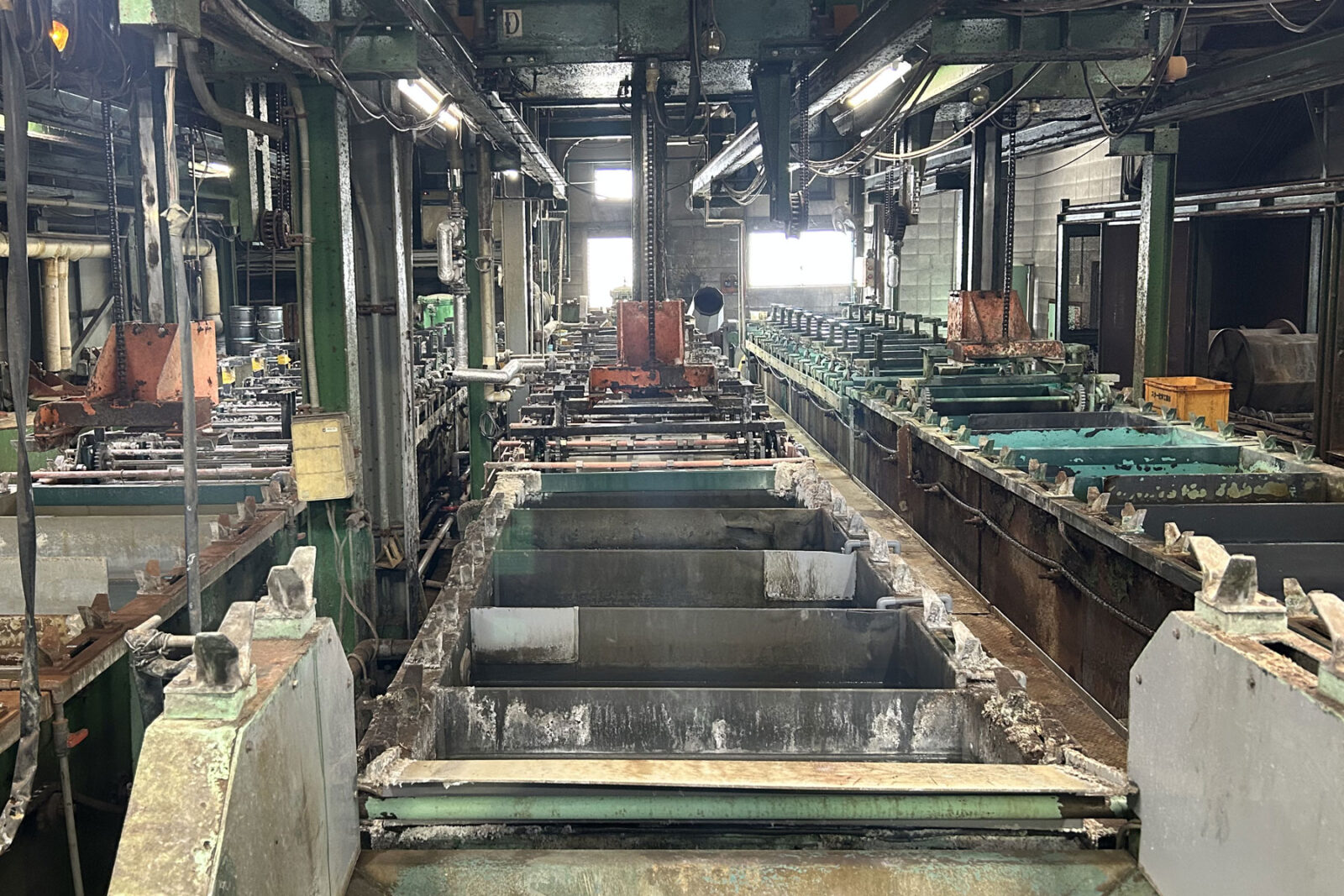 Ni(ニッケル) 10 連/Cu銅 11連/Bs 真鍮メッキ 12 連/黒ニッケルライン 4 連/本金 1連/検針ニッケル 2 連/代用クローム 1 連/硫酸銅 1連/キリンス 1連/その他 鍍金装置、バレル装置等